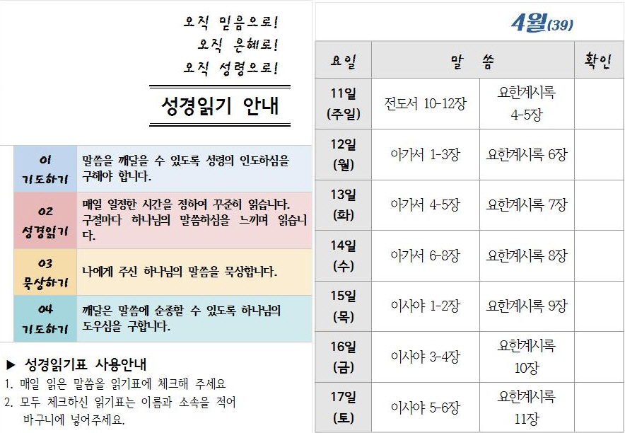 ¼º°æÀϵ¶ 39ÁÖÂ÷ ÀÏÁ¤(4¿ù 11ÀÏ~17ÀÏ)