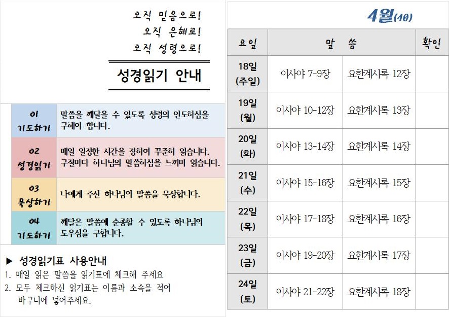 ¼º°æÀϵ¶ 40ÁÖÂ÷ ÀÏÁ¤(4¿ù 18ÀÏ~25ÀÏ)