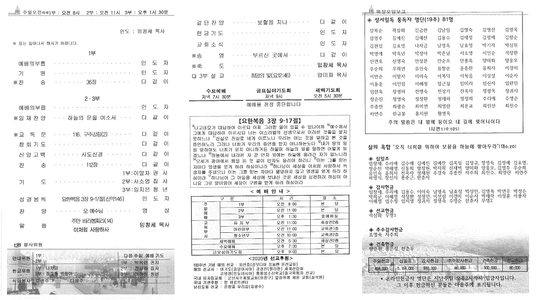 ¼º°æÀϵ¶ 20ÁÖÂ÷ ÀÏÁ¤(11¿ù 29ÀÏ~12¿ù 5ÀÏ)